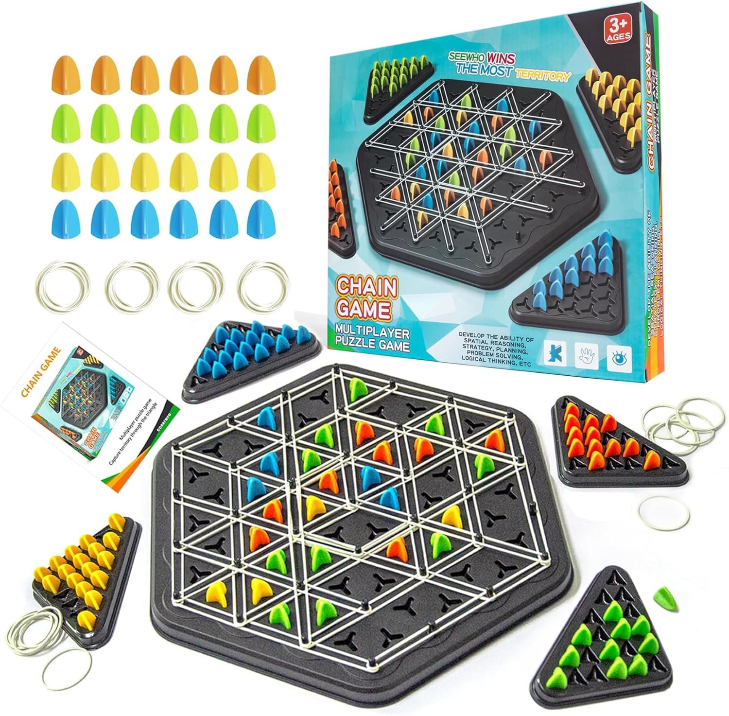 Chain Triangle Chess Game, Rubber Band Geoboard Game, Strategy Board Games, Fami
