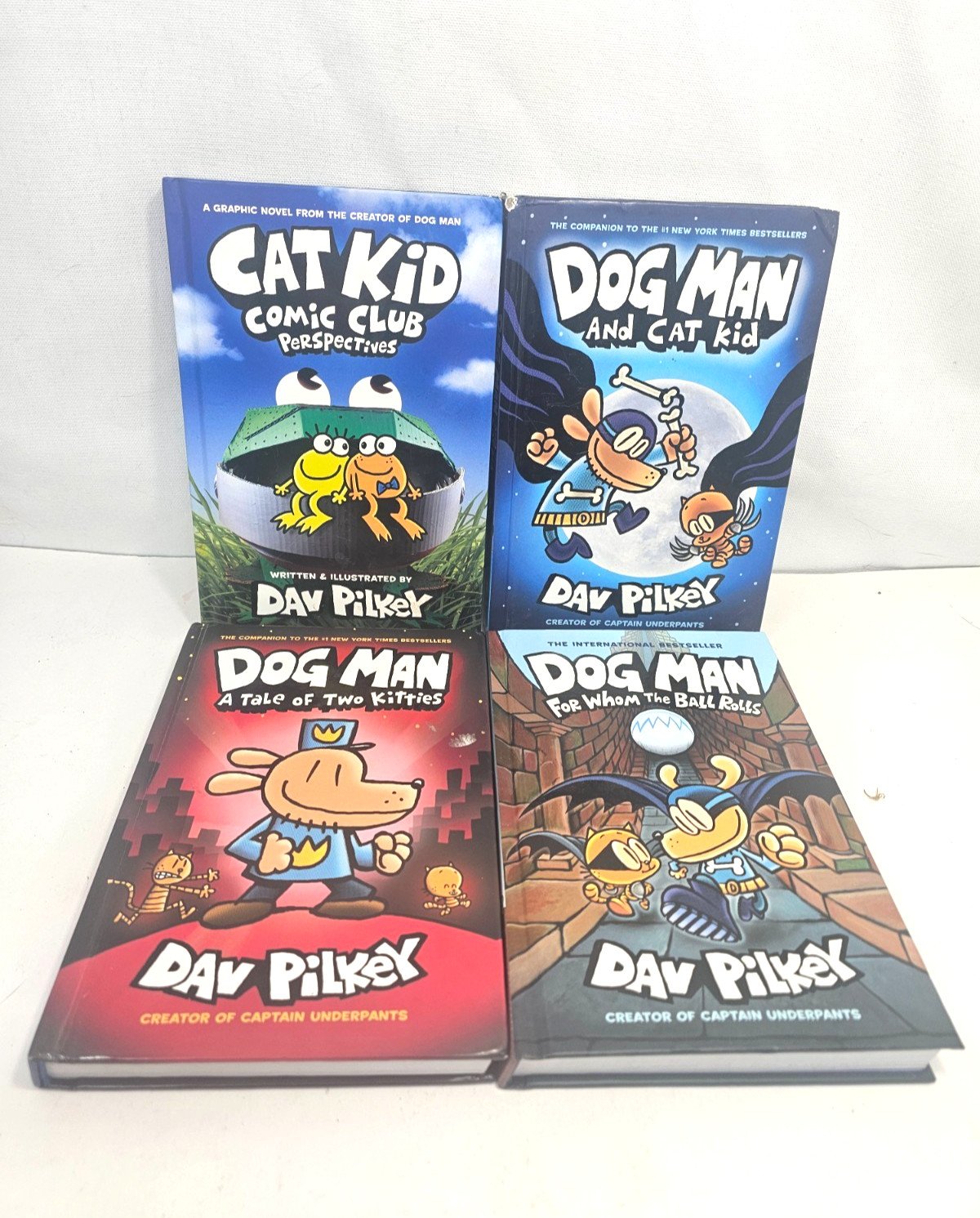 Dog Man Books Lot of 4 Hardcover Dav Pilkey Graphic Novel Set Series & Cat Kid