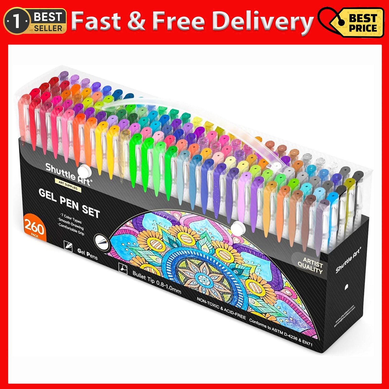 260 Pack Gel Pens Set 220% Ink Gel Pen for Adult Coloring Books Art