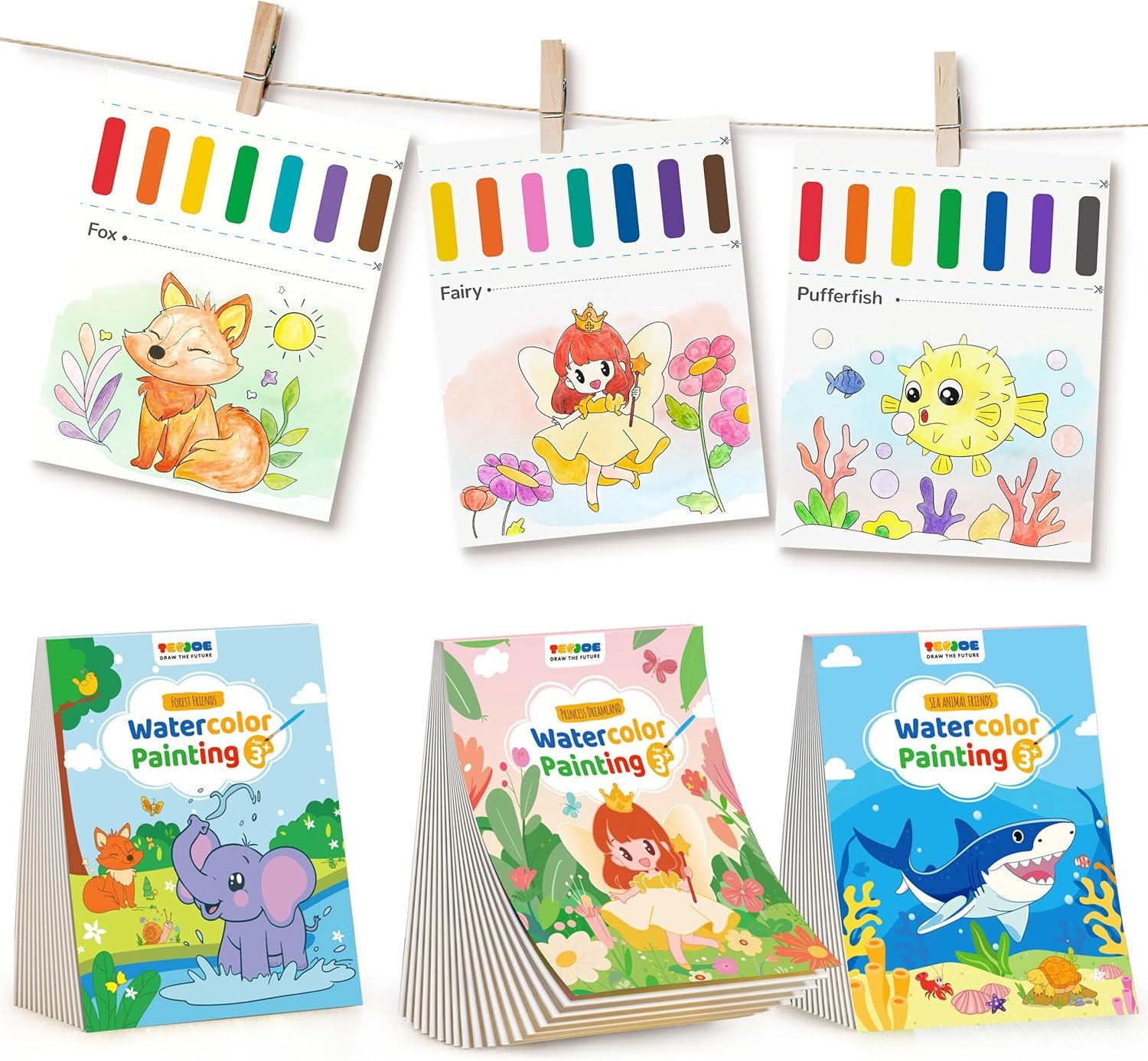 3 Pack Paint with Water Coloring Books for Toddlers, Watercolor Painting Set wit