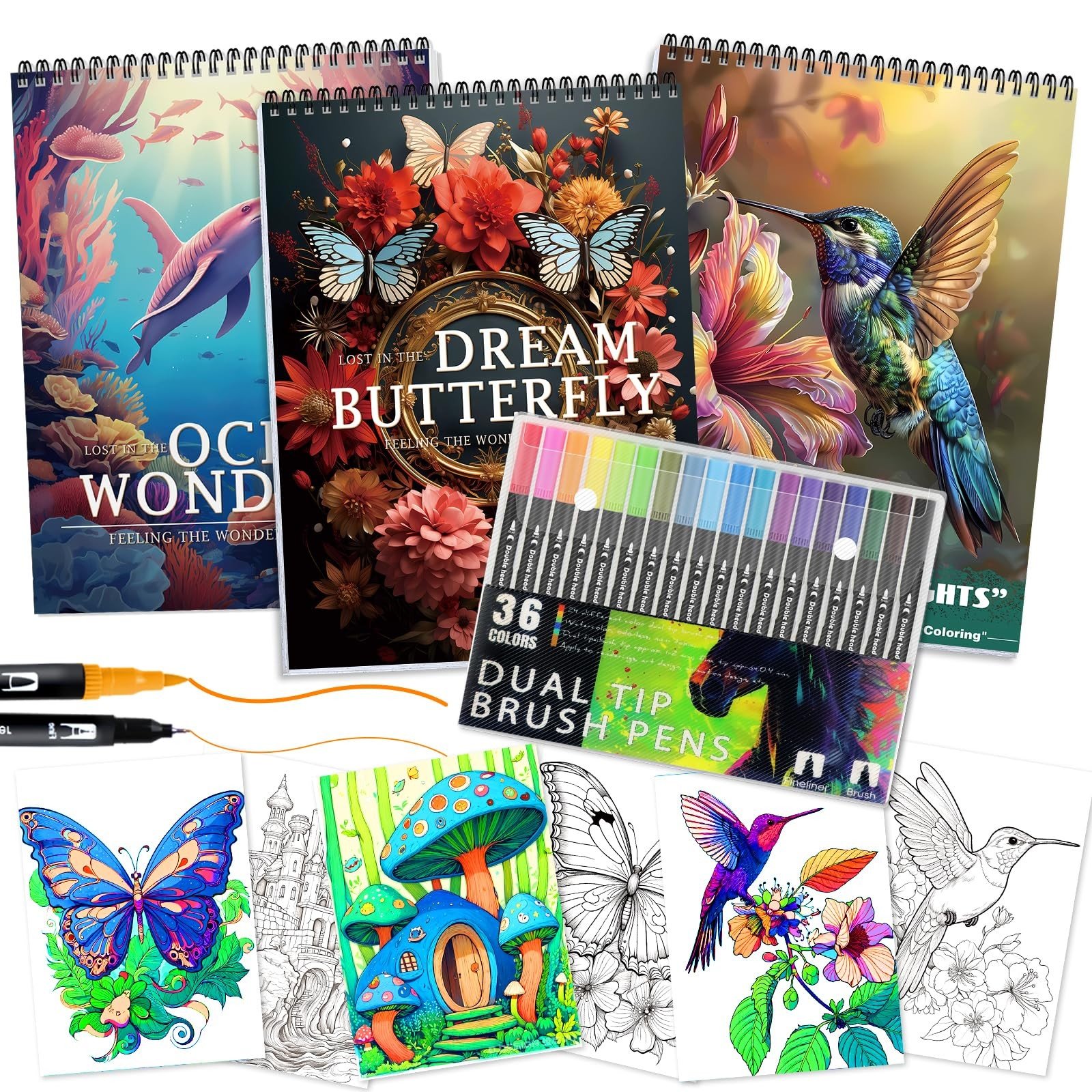 3Pcs Adult Coloring Book for Women Relaxation, 36 Colors Markers with Spiral …