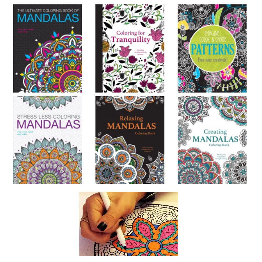 6 Adult Coloring Book Mandala Geometrical Designs Stress Relief Relaxation Color