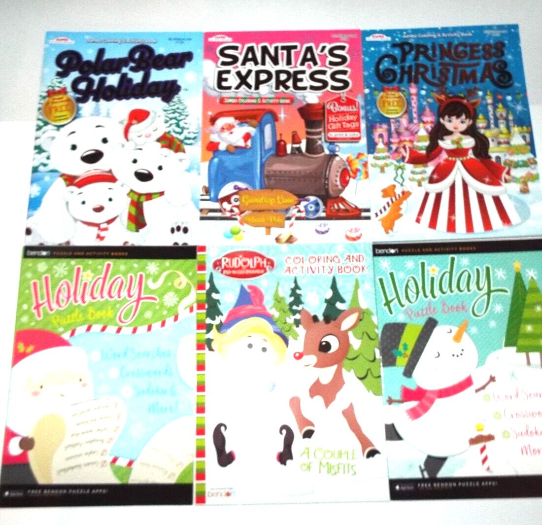 6 Christmas Coloring & Activity Books~ Polar Bears, Princess, Santa, Holiday NEW