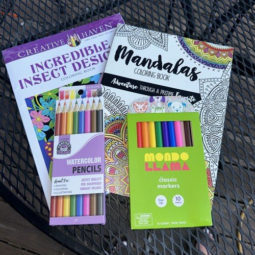 Adult coloring book (2) W/ markers & Pencils Price : 6.00 Ends on : N/A View on eBay