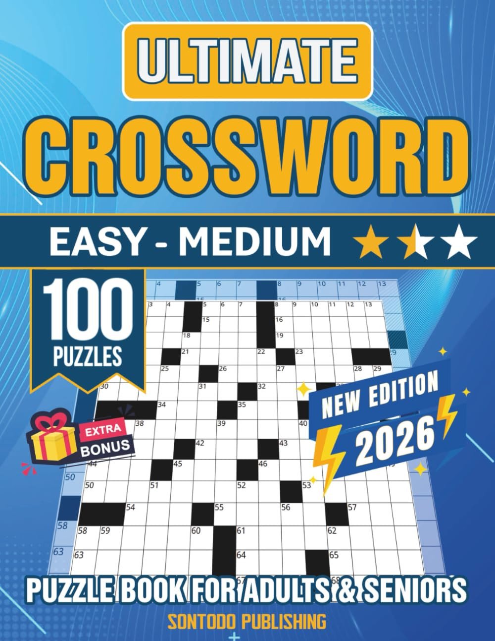 Easy – Medium Crossword Puzzle Books for Adults and Seniors – 100 Big Font, Eye-