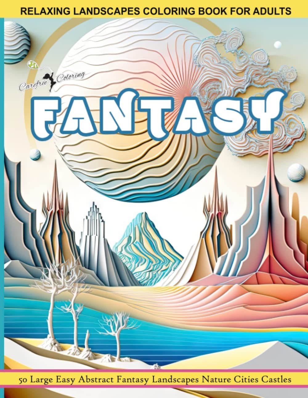 FANTASY LANDSCAPE COLORING BOOK FOR ADULTS 50 Large Easy Abstract Fantasy Landsc