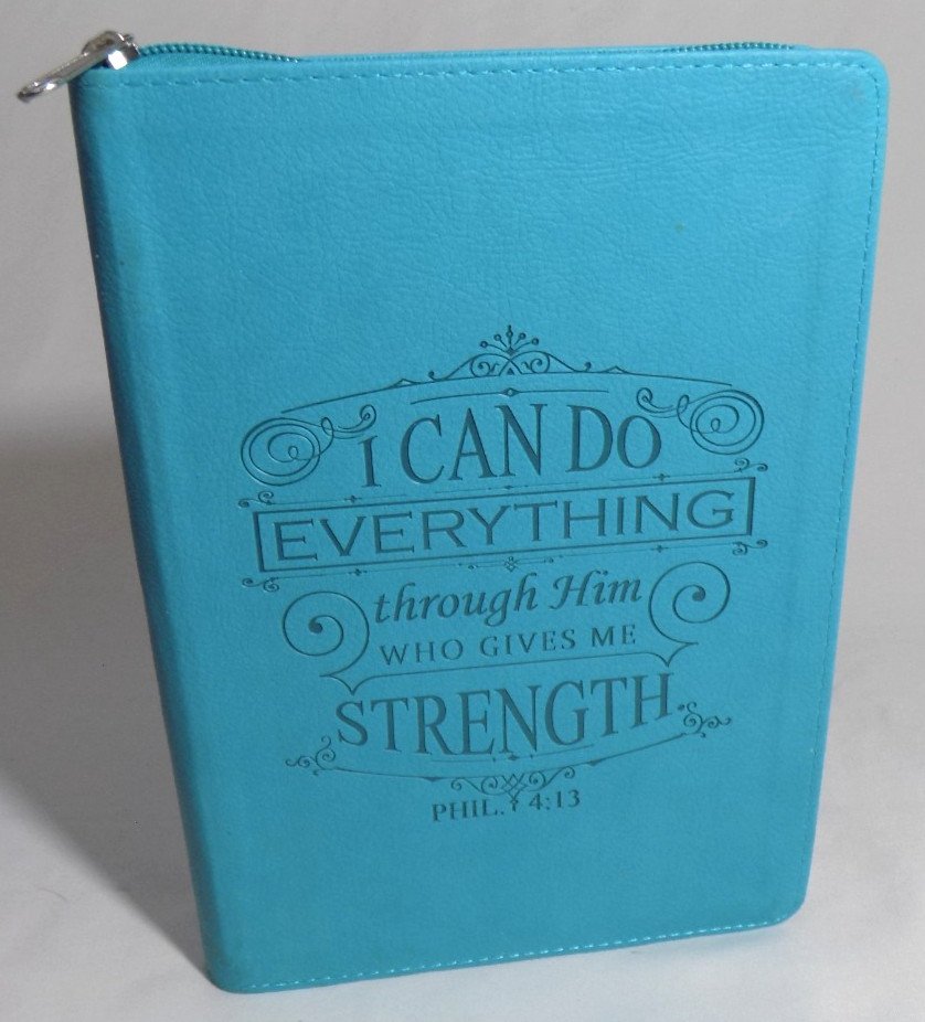 Faux Leather Lined Journal I Can Do Everything Phil 4:13 Bible Verse Teal Zipper
