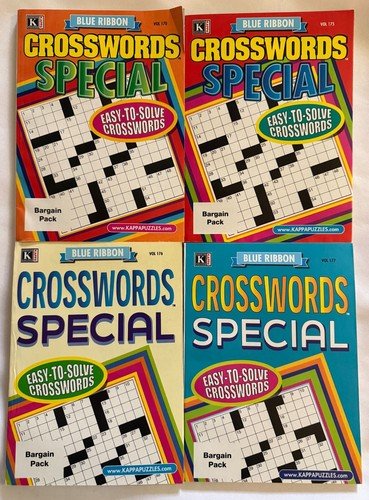Lot (4) Blue Ribbon Crosswords Special Easy-To-Solve Puzzle Books 170,75,76,77