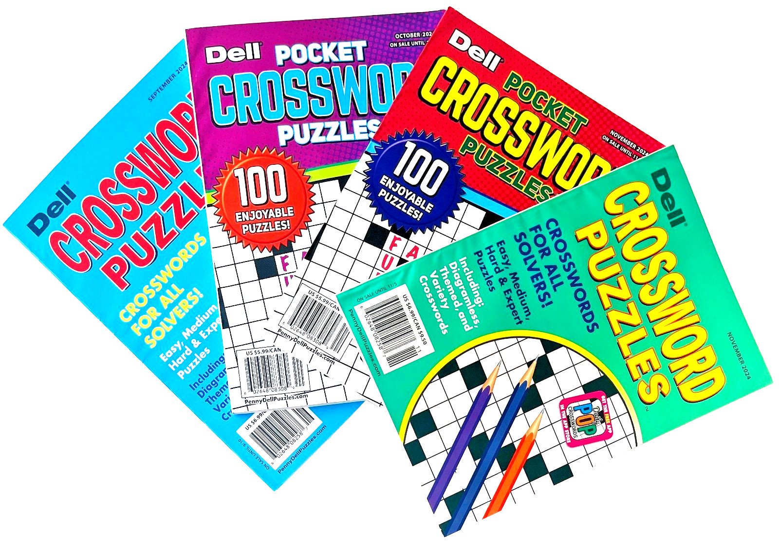 Lot 4 Penny Press Dell Pocket Original Crossword Puzzle Books All Solving Levels
