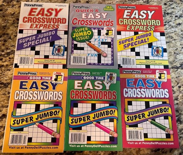 Lot 6 New Penny Press Dell Crossword Puzzle Books Brand New Unused NO Duplicates