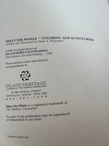 Maui the Whale Coloring Book Hawaii Puzzles Dot to Dots Kids Activities Travel