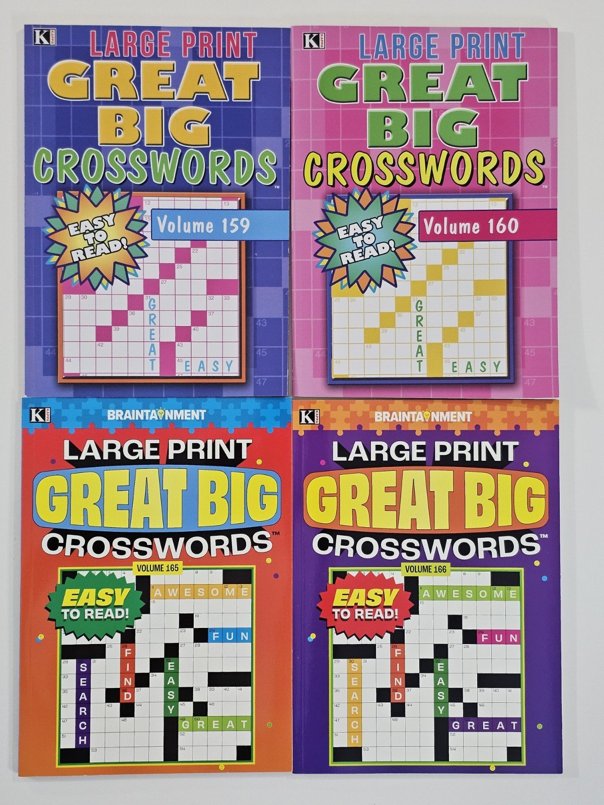 New 4 Large Print Great Big Crosswords Kappa Puzzle Books Vol#159-166 Fun Hobby