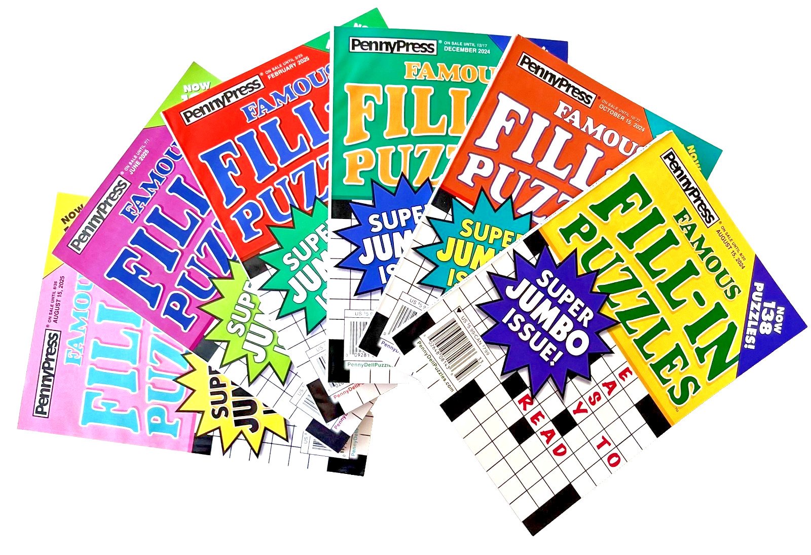 NEW Lot 6 Penny Press Dell Fill In Famous Super Jumbo Puzzle Books 138 In Each