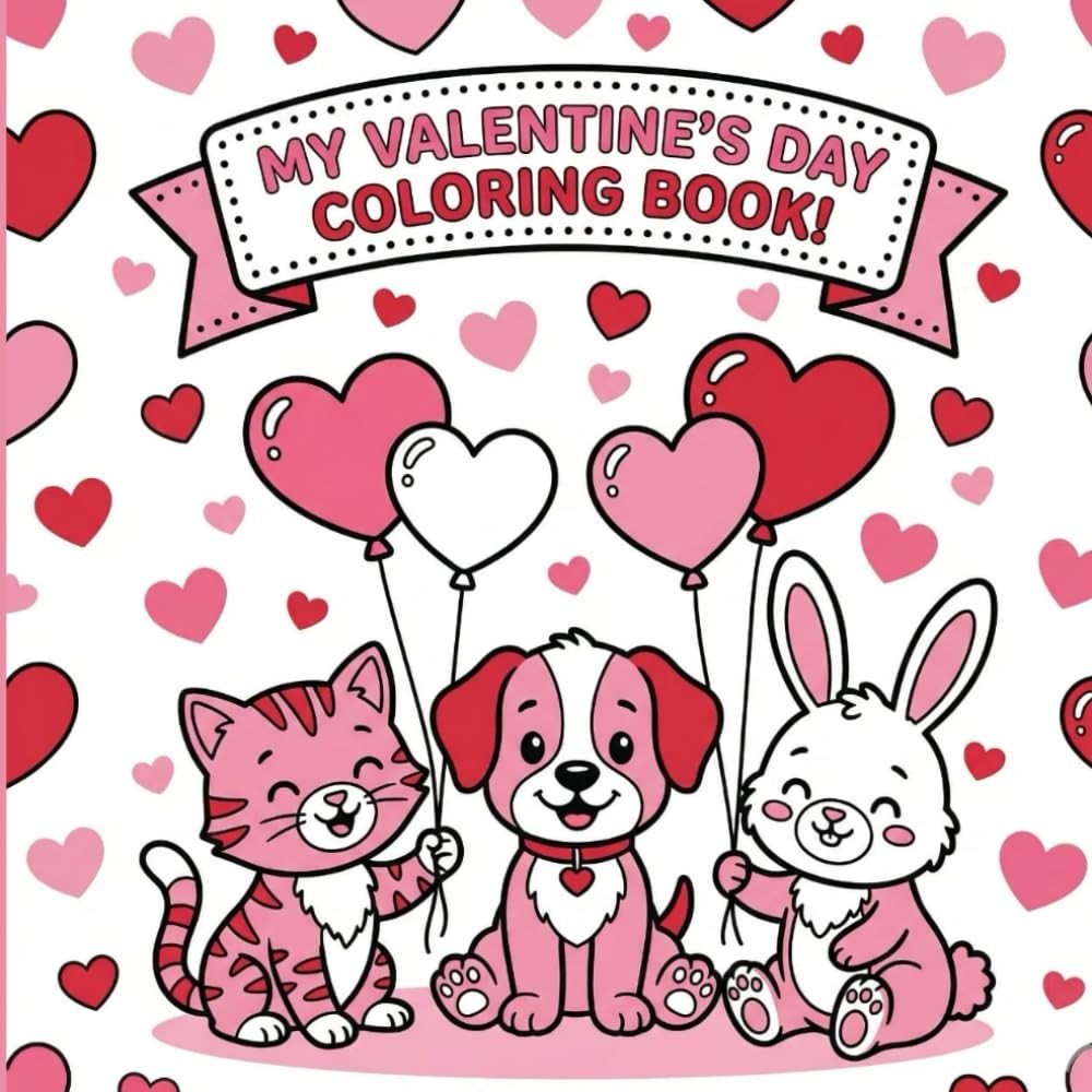 Valentine’s Day Coloring Book for Kids Ages 4–8: Cute & Easy Animal Designs with