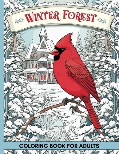 Winter Forest Coloring Book for Adults: 60 Pages with Wildlife and Country House
