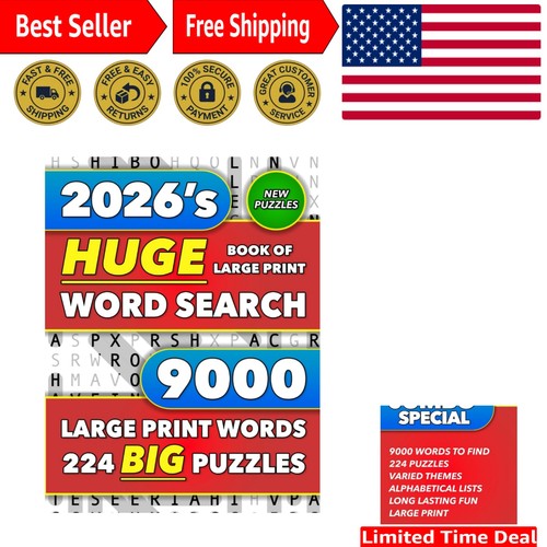 Huge Book of Large Print Word Search: 9000 Words – 224 Puzzles – Varied Themes
