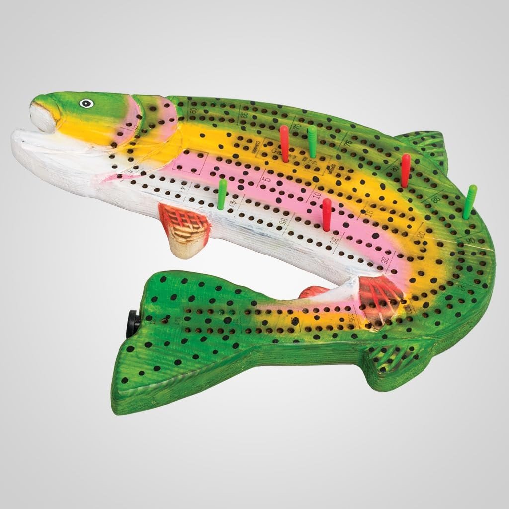 Trout Cribbage Board Game, Wooden 2-Player Set for Ages 12+, Nature-Inspired …